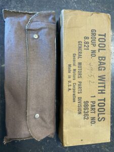 Accessory Tool Kit #986362 NOS New in Box. Parts & Accessories Manual shows 1949-54 application, may be correct for other years. Small water stain on back of the canvas bag (see pictures) and some minor rust spots on several of the tools. Purging some parts my dad had for decades. Will be posting used 1949-54 parts in the next few days. Make offer, bundle and save on multiple items.