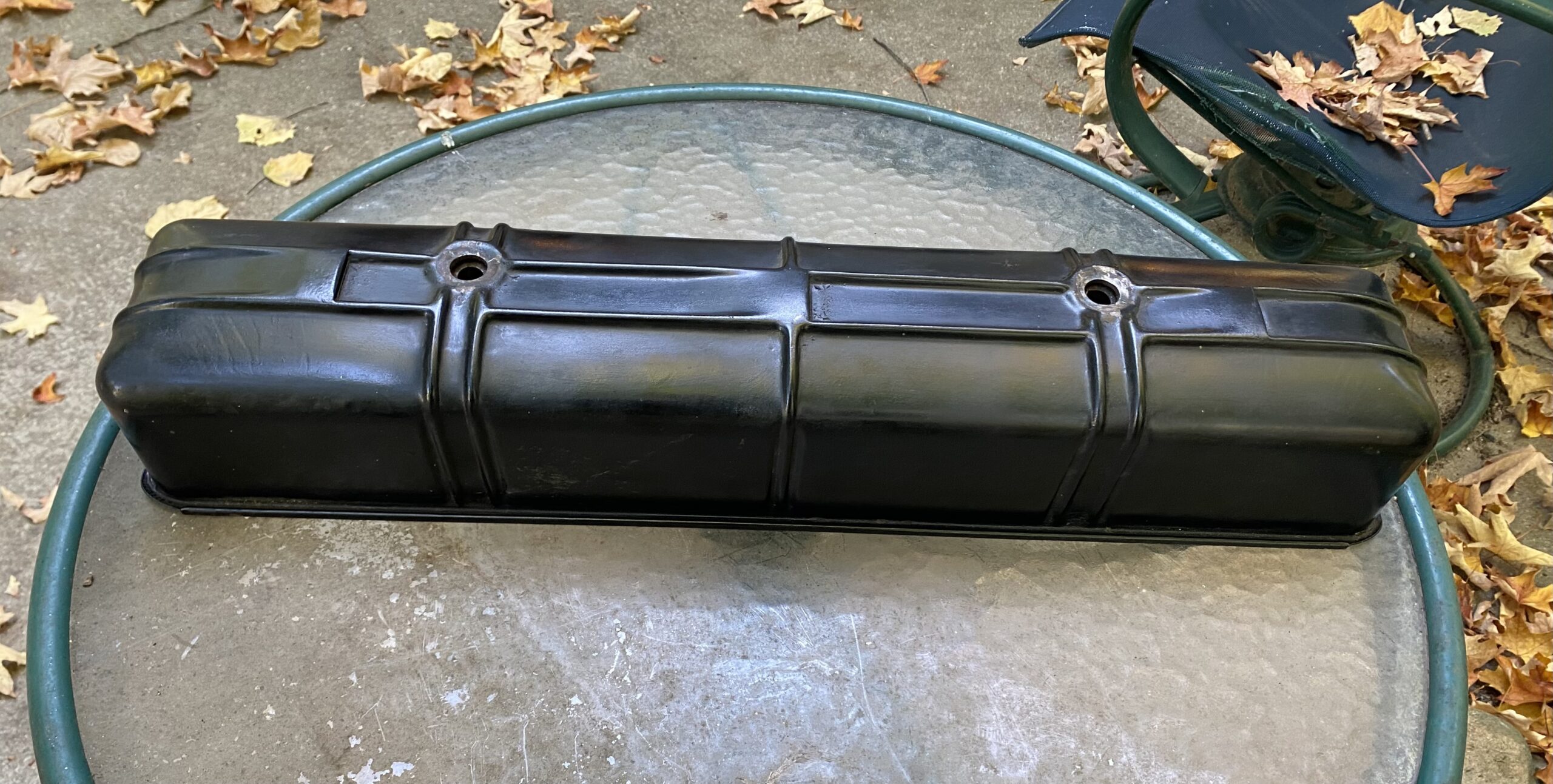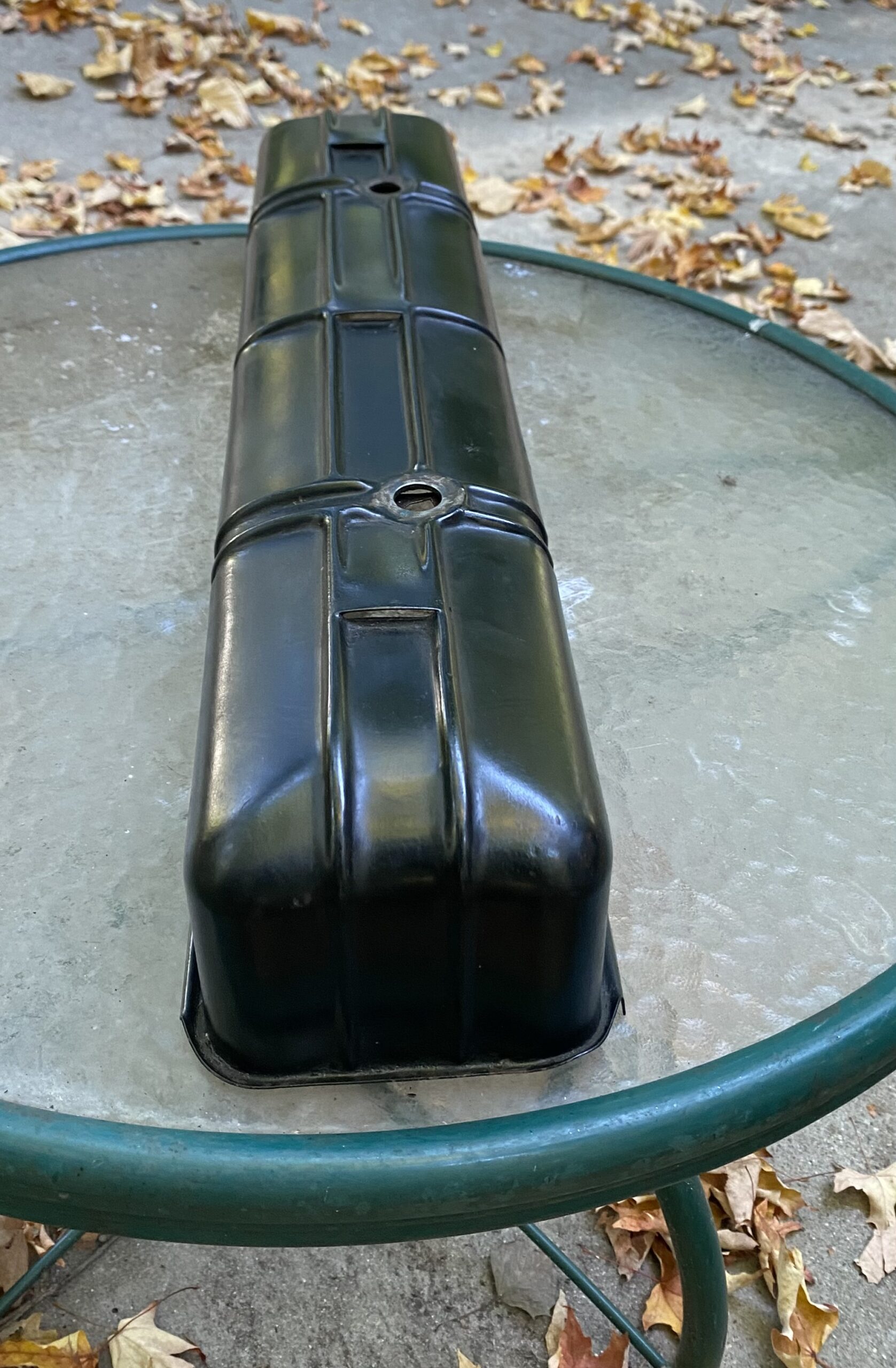 I have a nice used 216 c.i. engine valve cover, with no oil fill hole, held by 2 acorn nuts. This is correct for 1937-1948. The oil fill/cap is with the breather tube. The valve cover appears to be straight and in good condition. With a little cleanup, it can be easily put back into service. $50 + ride.